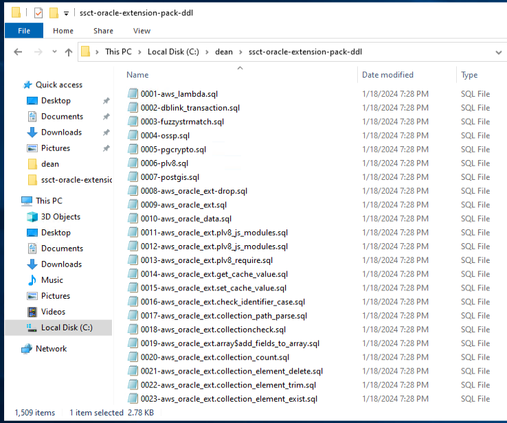After the extension has been created, copy the DDL files created from SCT to a location on the Windows server