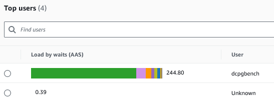 As expected the top user was dcpgbench, the user running the workload:
