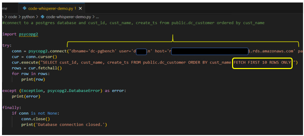 def connect_to_the_database(db_user, cluster_identifier, db_name, db_host, db_port):